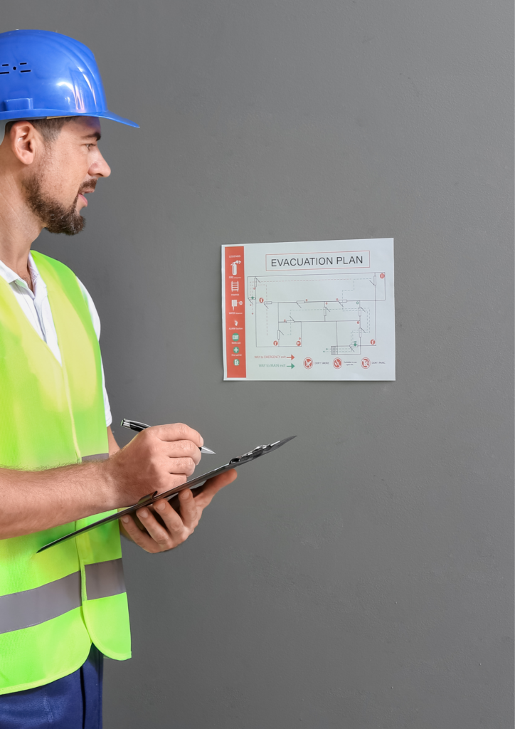 - a graphic part (location of fire-fighting equipment, fire-fighting devices, evacuation signs, evacuation plan, layout plan of the facility or facilities)